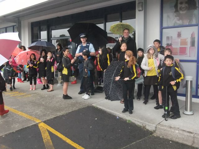 It was Gumboots and Umbrellas Day today. We walked to school wearing our gumboots and just as well we had our umbrellas because, it rained! It was fun walking in the rain especially with the teachers and Constable Harwood walking with us.
